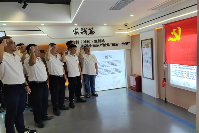 在沙田鎮廉政教育館,機關黨支部、水務工程黨支部、沙田分公司黨支部及秋長分公司黨支部黨員重溫入黨誓詞,參觀“基層監督”“警示教育”“家風家訓”等展廳,集中觀看了警示教育片,一幅幅生動形象的廉政畫面,一部部發人深省的數字影像,全方位、多角度直接沖擊和觸動了黨員干部的視覺和心靈。